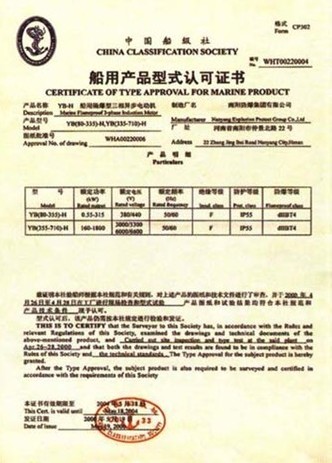 船用產品型式認可證書